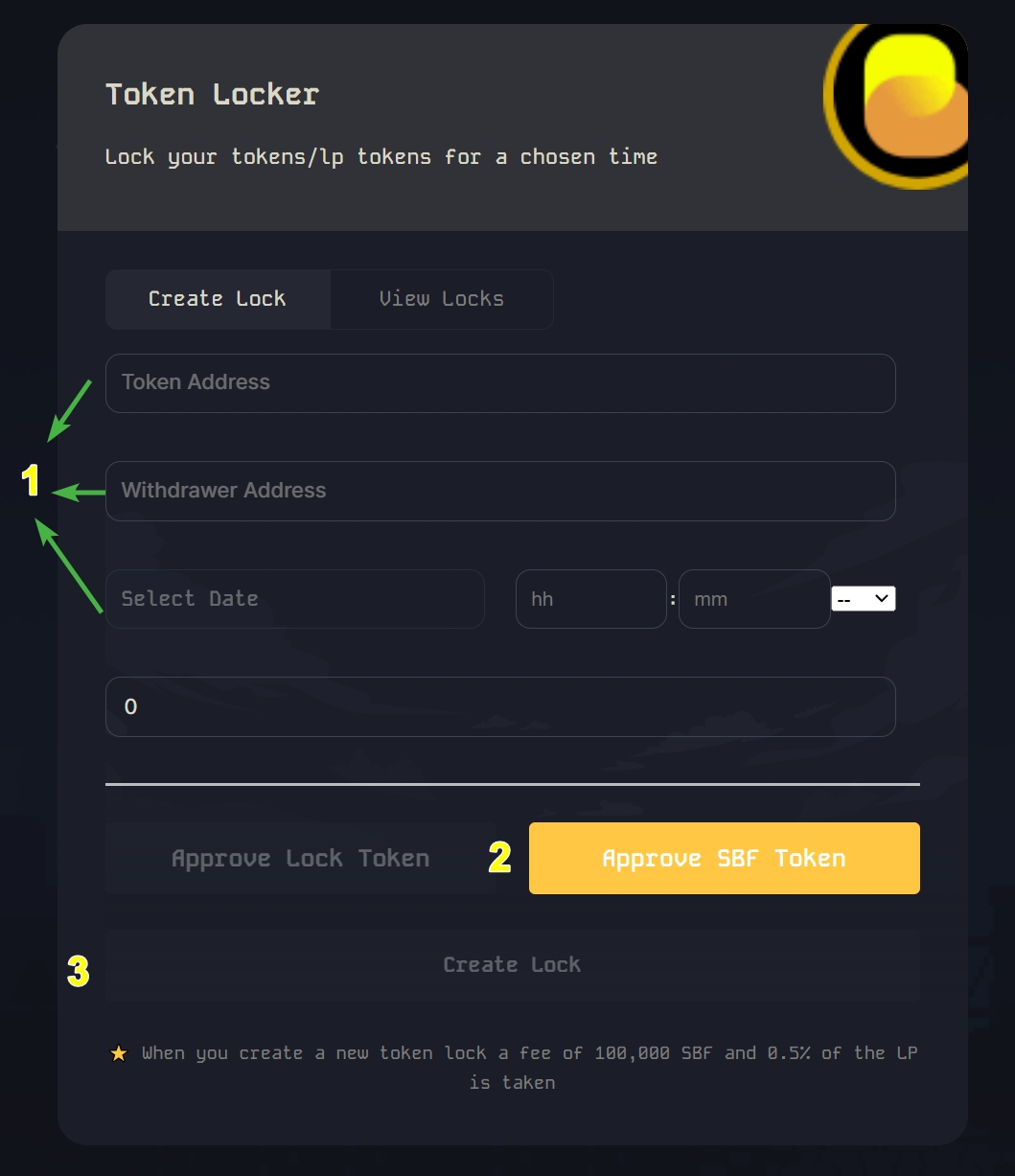 - 100 000 SBF and 0.5% of the tokens/LP to lock